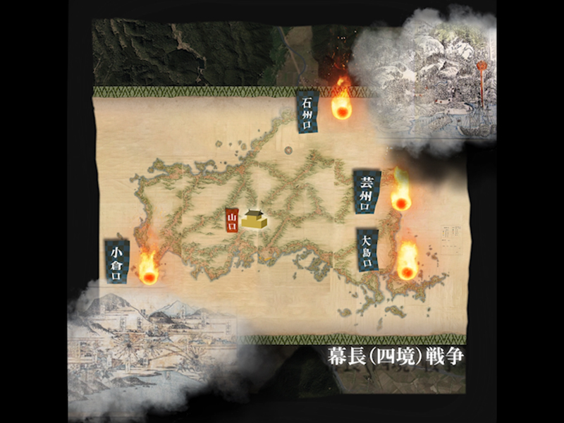精巧に作られた模型に映像を投影(マッピング)。文字や絵巻など、映像を立体的に見てもらえるようAEを使った編集に力を入れました。歴史ロマンを感じるダイナミックなBGMにも注目。
