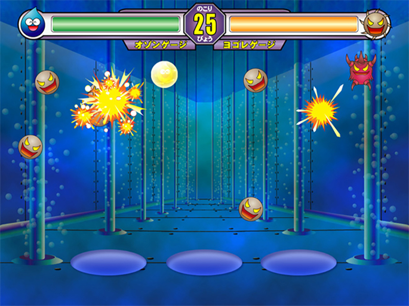 オゾン浄化槽の働きを遊びながら学べるバーチャルゲーム。200インチのスクリーンに映し出された浄化槽の映像に、プレーヤー自身もリアルタイムで入り込んで、流れてくる不純物にタッチすると燃えて消え、得点を競うゲーム。